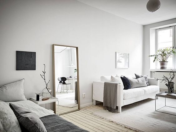 Büyük bir boy aynası (ne kadar büyükse o kadar iyi), oldukça basit bir çerçeveye bağlı kaldığınız sürece görsel alan hissini genişlettiği için sıkışık alanları iyileştirir. Süslü biri, odayı daha büyük hissettirme hedefinizi engelleyebilir tabii.