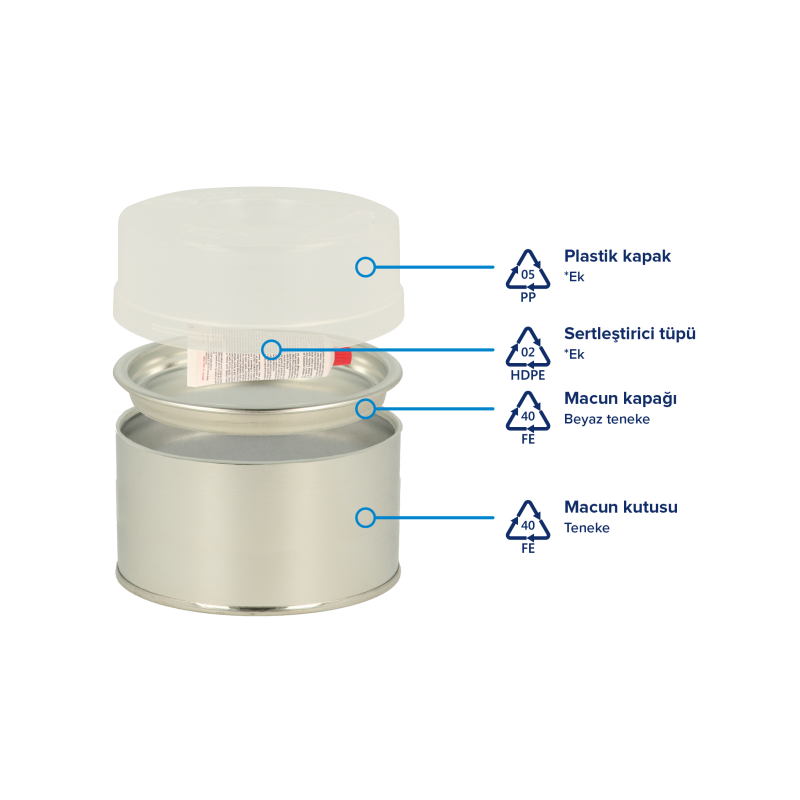 Akçalı Boya’nın ürettiği tüm ürünler, kalan boşaltma işleminden sonra geri dönüşüm döngüsüne geri döndürülebilir. Burada önemli olan, herhangi bir araç kullanmadan tüm olası ambalaj bileşenlerinin ayrılmasıdır!